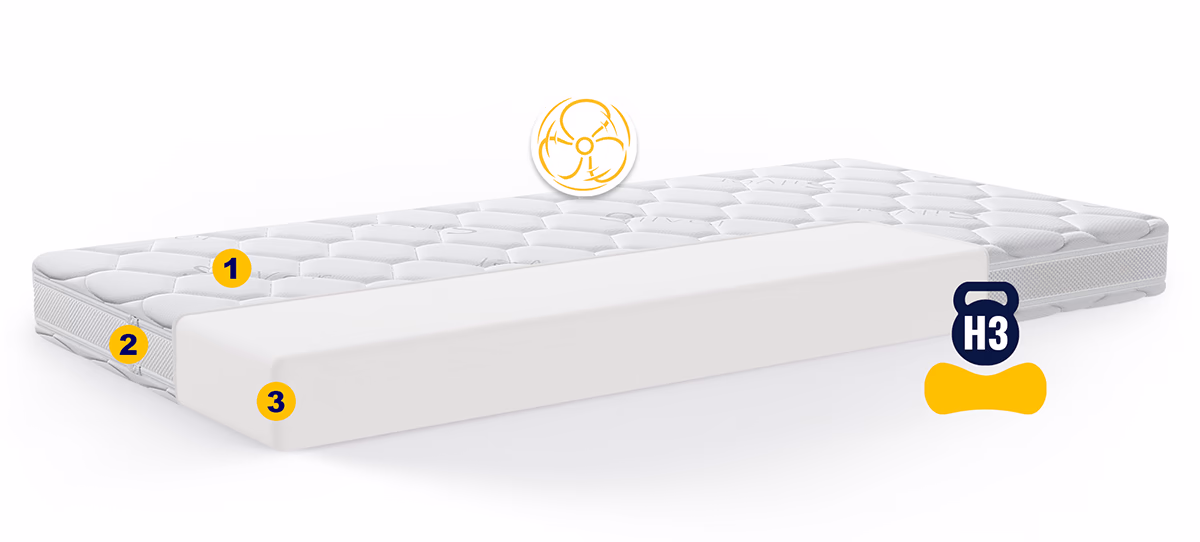 Pianka wyróżnia się wysoką elastycznością, dzięki swojej strukturze pianka dopasowuje się do kształtu ciała, wspierając prawidłowe ułożenie kręgosłupa, a jednocześnie jest odporna na odkształcenia i bardzo łatwa w pielęgnacji. Materac jest przewiewny i skutecznie odprowadza wilgoć, co ogranicza ryzyko przegrzewania i zapewnia higieniczne warunki wypoczynku. Doskonale sprawdzi się zarówno w codziennym użytkowaniu, jak i jako materac turystyczny – jest lekki, łatwy w transporcie i uniwersalny w zastosowaniu.